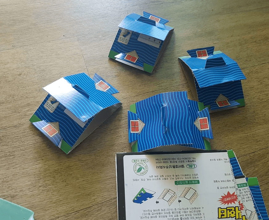 조립은 대략, 접어서 집모양을 만들어주는 틈사이로 , 끼어 넣어주면 간단하게 만들어 집니다.