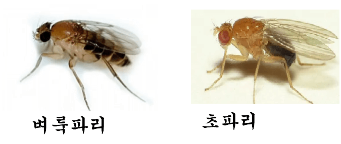 위에 사진 보시면 오른쪽이 초파리고 왼쪽이 벼룩파리라는 놈인데. 이거사람 앞에서, 조만한놈이 개빠르게 왔다갔다 하는녀석은100프로 벼룩파리입니다.